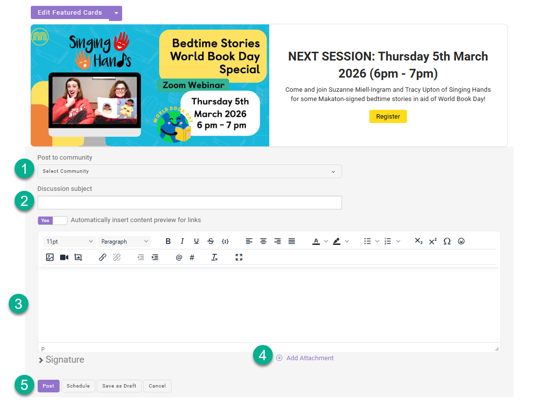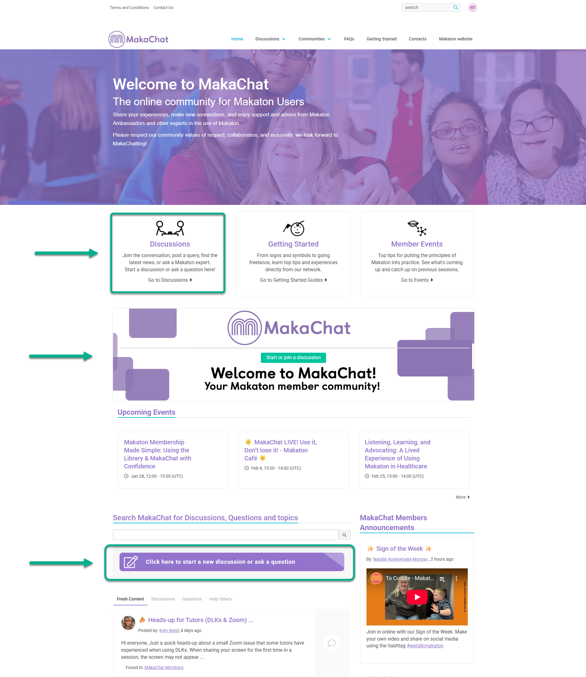 Step 3: To start and post a discussion, click on any of the discussions buttons from the home page.