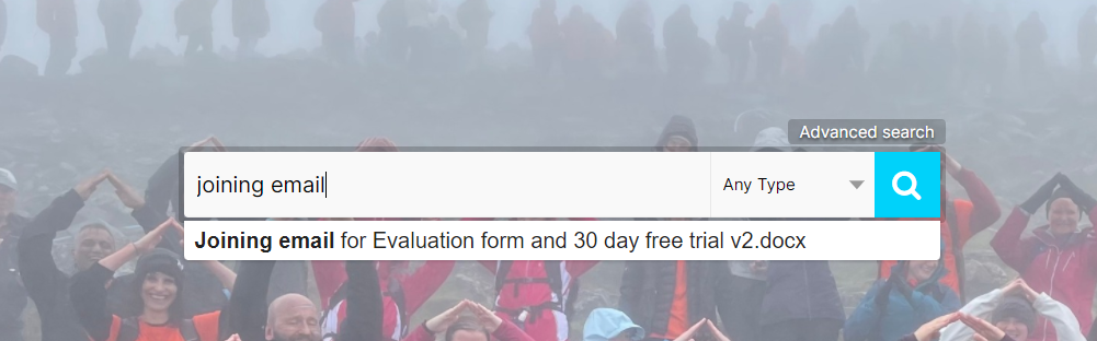 Step 2: Search 'joining email' in the search bar andd press enter or press the blue icon at the right of the search bar.