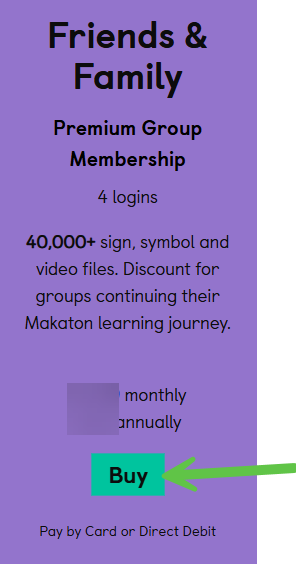 Step 3: Scroll down to see the types of Group memberships available, You can only buy a Grup memebrship on Direct Debit within the Friends and Family option. Click on BUY to take you to the next step.